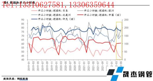 4月挖掘機(jī)出口銷量8445臺,同比增長64%,增幅較去年收窄,目前出口量占到挖掘機(jī)總銷量的40.95%,較去年同期增加22.03個百分點,出口對挖掘機(jī)銷量貢獻(xiàn)明顯增加。但分析來看,未來挖掘機(jī)出口銷量增長空間收窄,主要原因包括以下幾個方面:1、中國作為制造業(yè)大國,在去年疫情修復(fù)后為全球工業(yè)產(chǎn)品供應(yīng)發(fā)揮了重要作用,目前全球制造業(yè)供應(yīng)鏈逐漸恢復(fù)正常,對中國進(jìn)口需求下降。2、海外市場需求轉(zhuǎn)弱,從小松挖掘機(jī)公布的各國挖掘機(jī)開工小時數(shù)來看,5月日本、印尼開工小時數(shù)均呈現(xiàn)環(huán)比下滑趨勢,北半球開始進(jìn)入施工淡季,對挖掘機(jī)需求減弱。