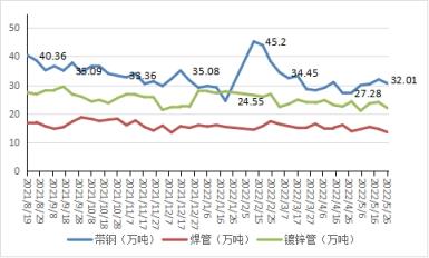 網(wǎng)統(tǒng)計唐山地區(qū)熱軋帶鋼生產(chǎn)企業(yè)15家,總計29條帶鋼軋線, 5月內(nèi)平均產(chǎn)能利用率57.81%,較上月同期增長2.01個百分點,增長率快速下降,較去年農(nóng)歷同期下降14.23個百分點。同時山東、河北、山西等地發(fā)文推進無縫鋼管行業(yè)超低排放改造,不過中鋼協(xié)數(shù)據(jù)顯示,截至2022年4月底,已經(jīng)有40家無縫鋼管企業(yè)完成了超低排放改造和評估監(jiān)測,且以往年經(jīng)驗,大多以壓減建筑無縫鋼管 厚壁鋼管產(chǎn)量為主,數(shù)據(jù)上反饋6月熱軋類減量預期不大。