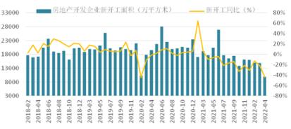 圖2 2018-2022年月度新開(kāi)工面積及同比增速走勢(shì)