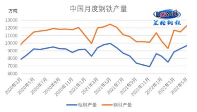 從累計產量來看,仍呈現同比下降局面。1-5月,我國生鐵產量36087萬噸,同比下降5.9%;粗鋼產量43502萬噸,同比下降8.7%;厚壁鋼管產量54931萬噸,同比下降5.1%。