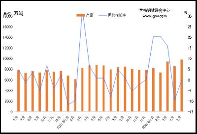 據(jù)國家統(tǒng)計局統(tǒng)計,2022年1-5月份全國鐵礦石原礦總產(chǎn)量為42388.3萬噸,同比增長0.2%,5月份在疫情逐步得到控制后,國產(chǎn)鐵礦石產(chǎn)量開始出現(xiàn)穩(wěn)步增長。
