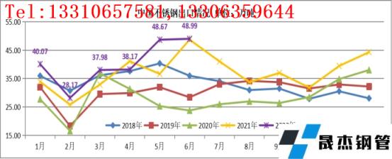 2022年6月份,中國(guó)不銹鋼出口量為48.99萬(wàn)噸,創(chuàng)歷史新高!環(huán)比增加0.32萬(wàn)噸,增幅0.65%;同比增加0.29萬(wàn)噸,增幅0.61%。