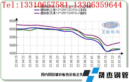 圖1 國內主要城市1.0mm鍍鋅板行情走勢