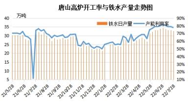 據網調研數據顯示:截至7月28日,唐山區(qū)域高爐產能利用率70.21%,環(huán)比上月下跌8.68個百分點;鐵水日均產量較上月減少約1.7萬噸。
