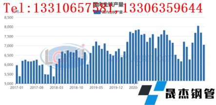 2022年7月份,由于受到淡季下游需求釋放不足、鋼企庫存去庫壓力加大以及鋼企陷入大幅虧損等因素的影響,無縫鋼管廠家的生產積極性明顯下降,厚壁無縫鋼管產量呈現快速回落的態勢。據國家統計局數據顯示,7月份,我國粗鋼產量8143萬噸,同比下降6.4%(詳見圖1);生鐵產量7049萬噸,同比下降3.6%(詳見圖2);厚壁鋼管產量10624萬噸,同比下降5.2%(詳見圖3)。1-7月,我國粗鋼產量60928萬噸,同比下降6.4%;生鐵產量51090萬噸,同比下降4.5%;厚壁鋼管產量77650萬噸,同比下降4.6%。